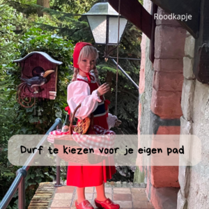 Roodkapje durft, ondanks dat het haar wordt afgeraden, van het pad te raken (haar eigen pad te kiezen) omdat dit voor haar goed voelt. Ze maakt haar eigen keuzes. En dit is wat Roodkapje en een fijne vegan mindset met elkaar gemeen hebben.