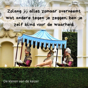 Wanneer de keizer even zelf had nagedacht over hoe hij er zelf bij liep of in de spiegel had gekeken, was dit niet gebeurd. De boodschap hierin is dus echt: Mensen kunnen tegenwoordig van alles roepen (dat je dierlijke producten nodig hebt, vitamine te kort komt, het nou eenmaal zo hoort etc.) maar neem dus niet alles zomaar over. Bedenk bij alles: Hoe sta jij hier eigenlijk zelf in? En klopt het eigenlijk wel wat ze zeggen?