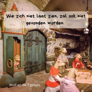 Wie kent dit sprookje niet? De wolf en de 7 geitjes, maar wist je dat veel vegans zich gedragen als het kleinste geitje? Ze verstoppen zich in de klok, want daar zijn ze veilig. Ze krijgen geen opmerkingen over hun ideeën over hun kijk op veganisme, ontlopen zo gesprekken en denken dat dit de beste keuze is, maar ondertussen kan het geitje ook niet mee ganzenborden of andere leuke dingen doen en loopt hij dus veel dingen mis. Zonde toch?